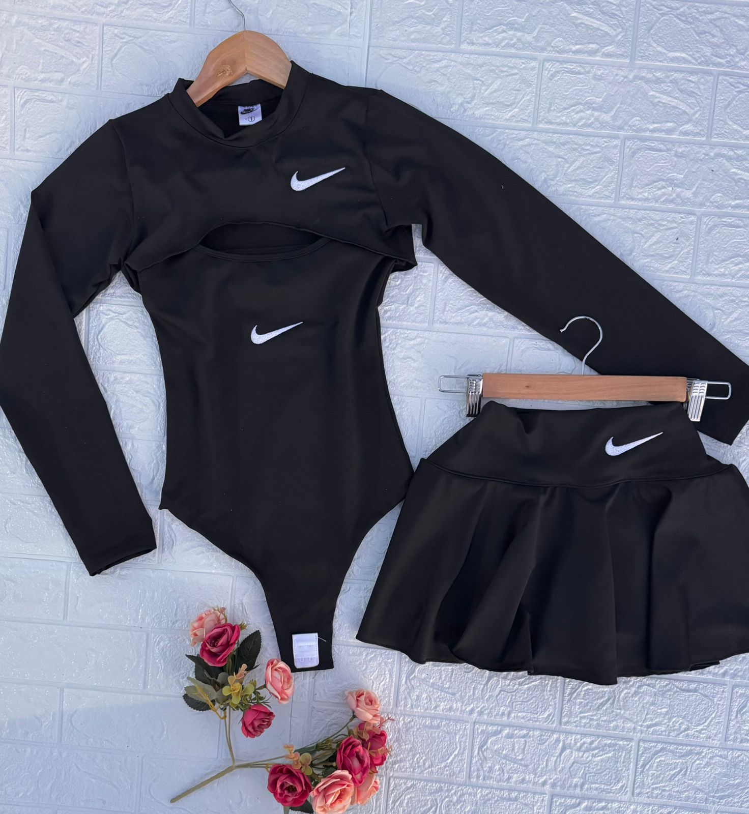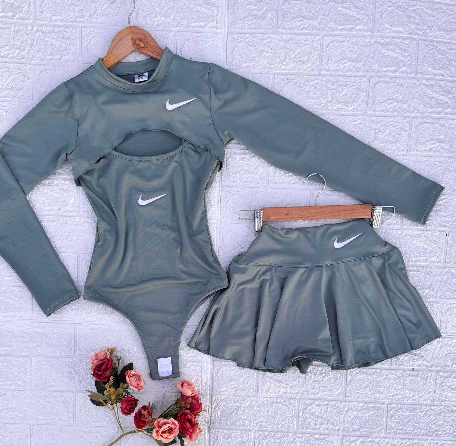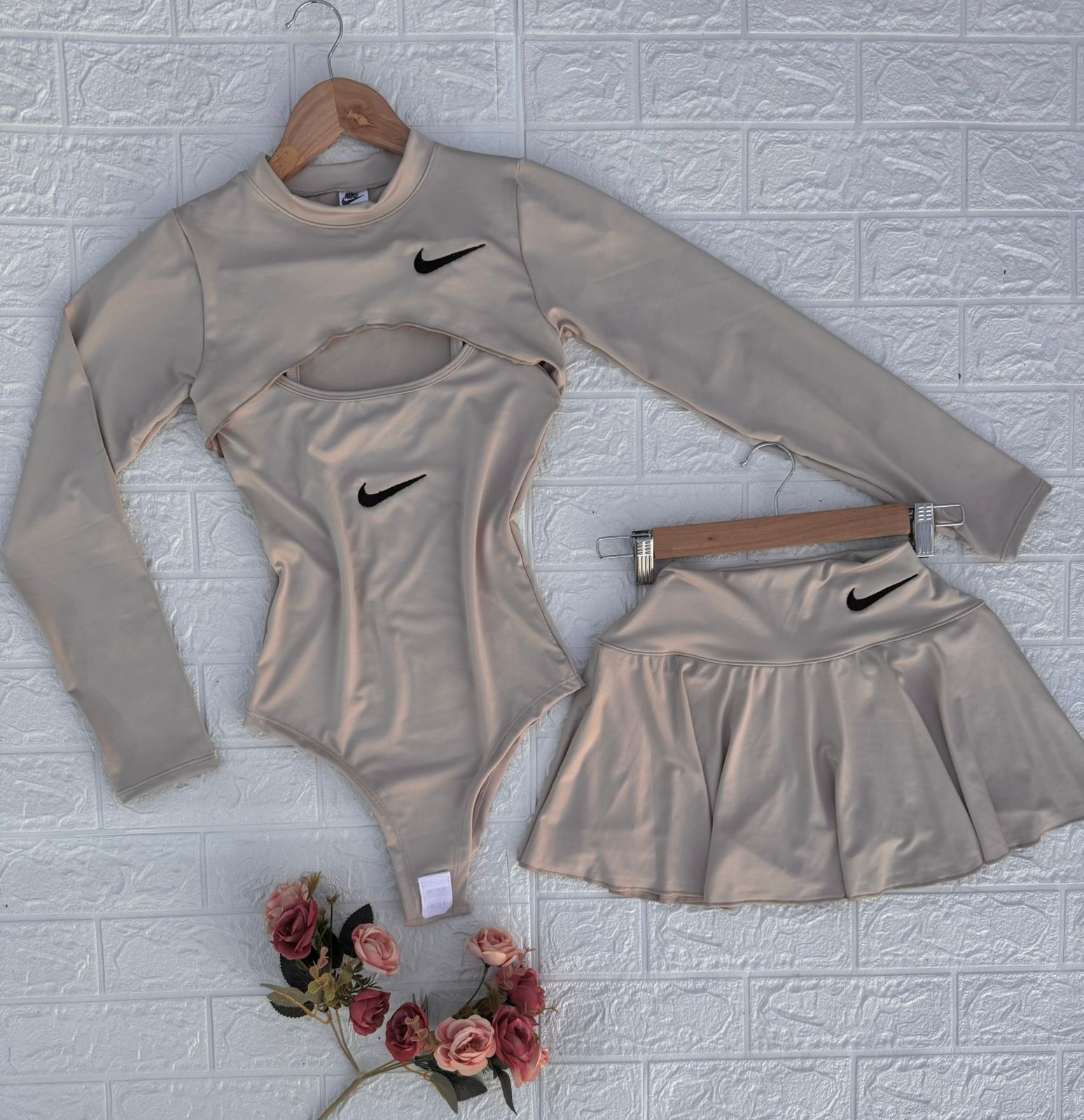 ✅ Incluye body con tiras finas, buzo crop y short pollera con bolsillo para celular 📱