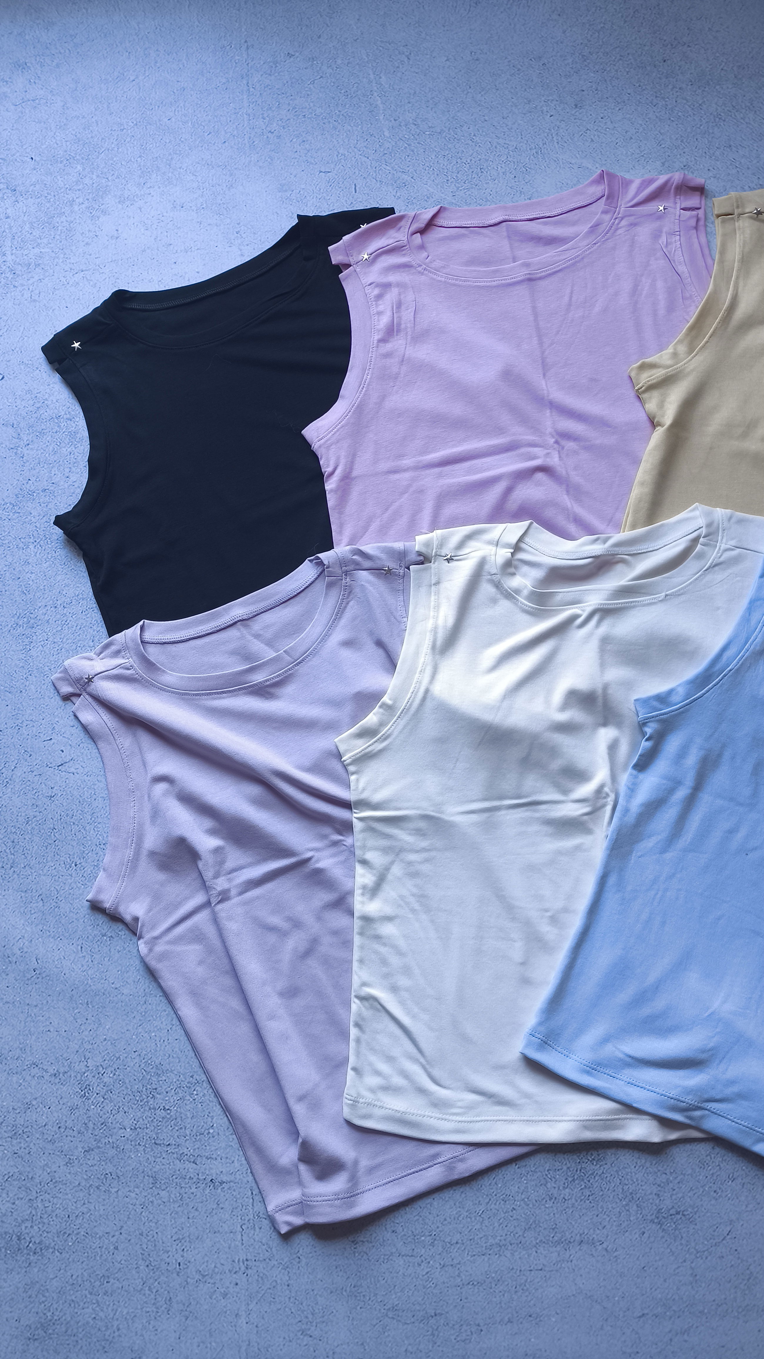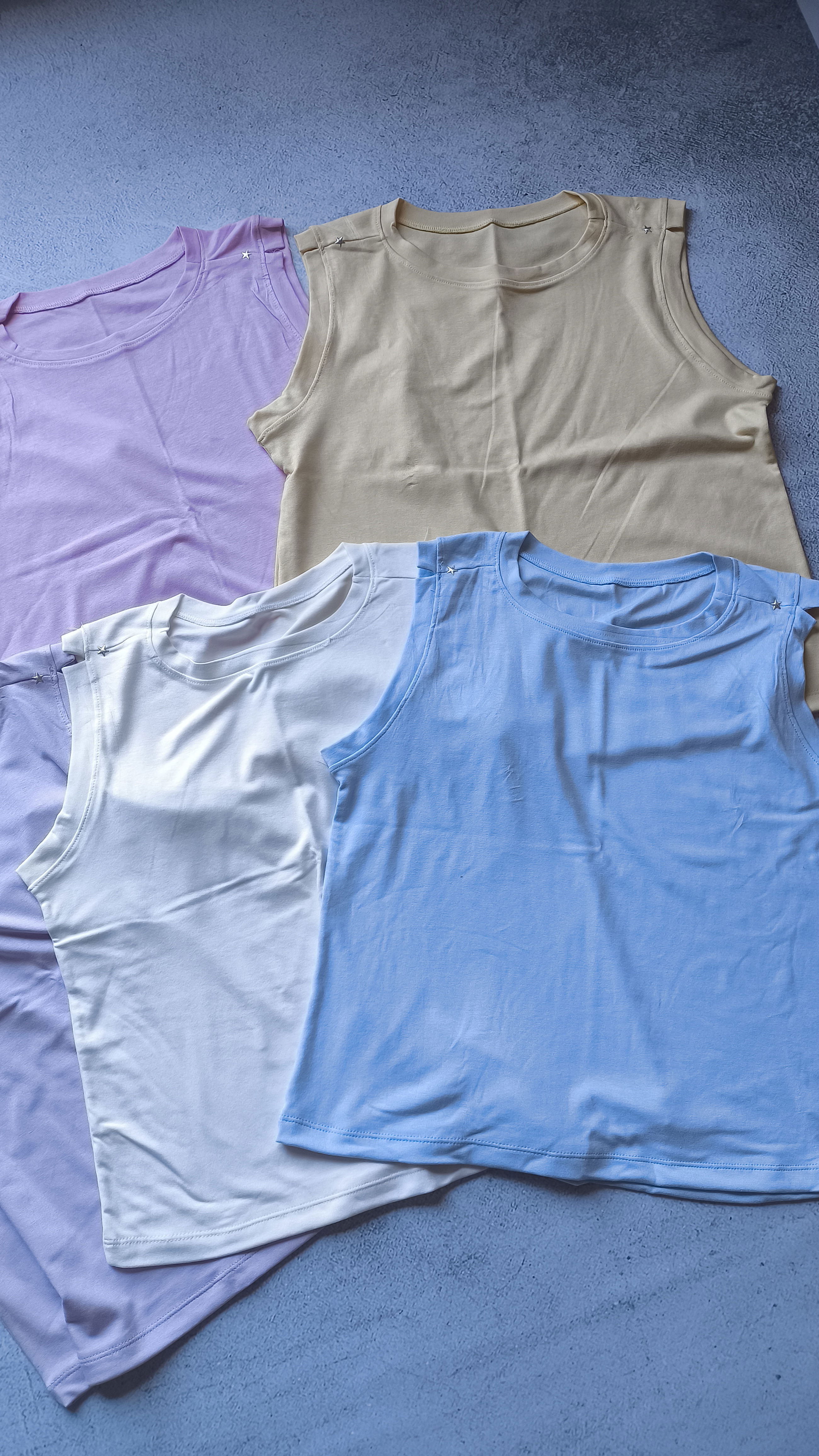 Musculosa básica detalle de estrella talle único sede hasta un XL super amplia , modal peinado premium