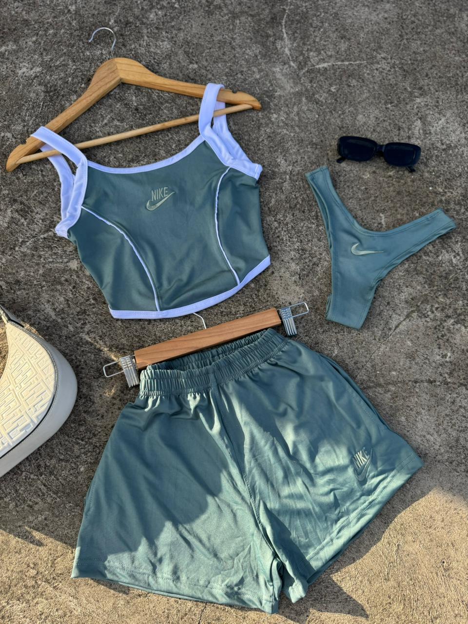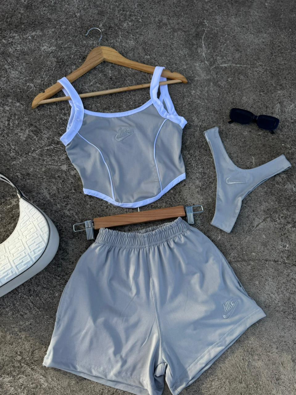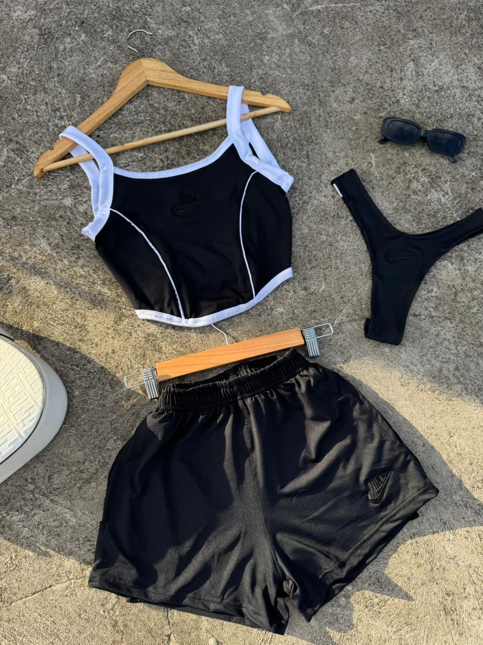 Tres piezas incluye bombacha de ba帽o, short y corset