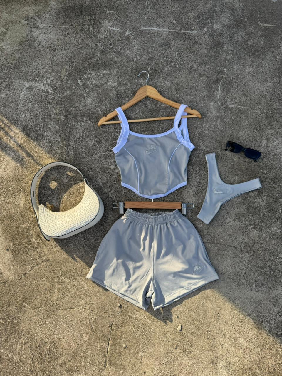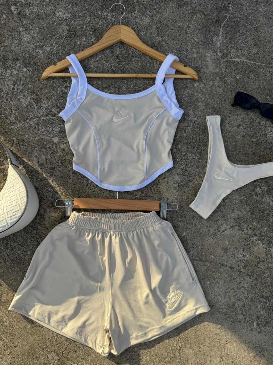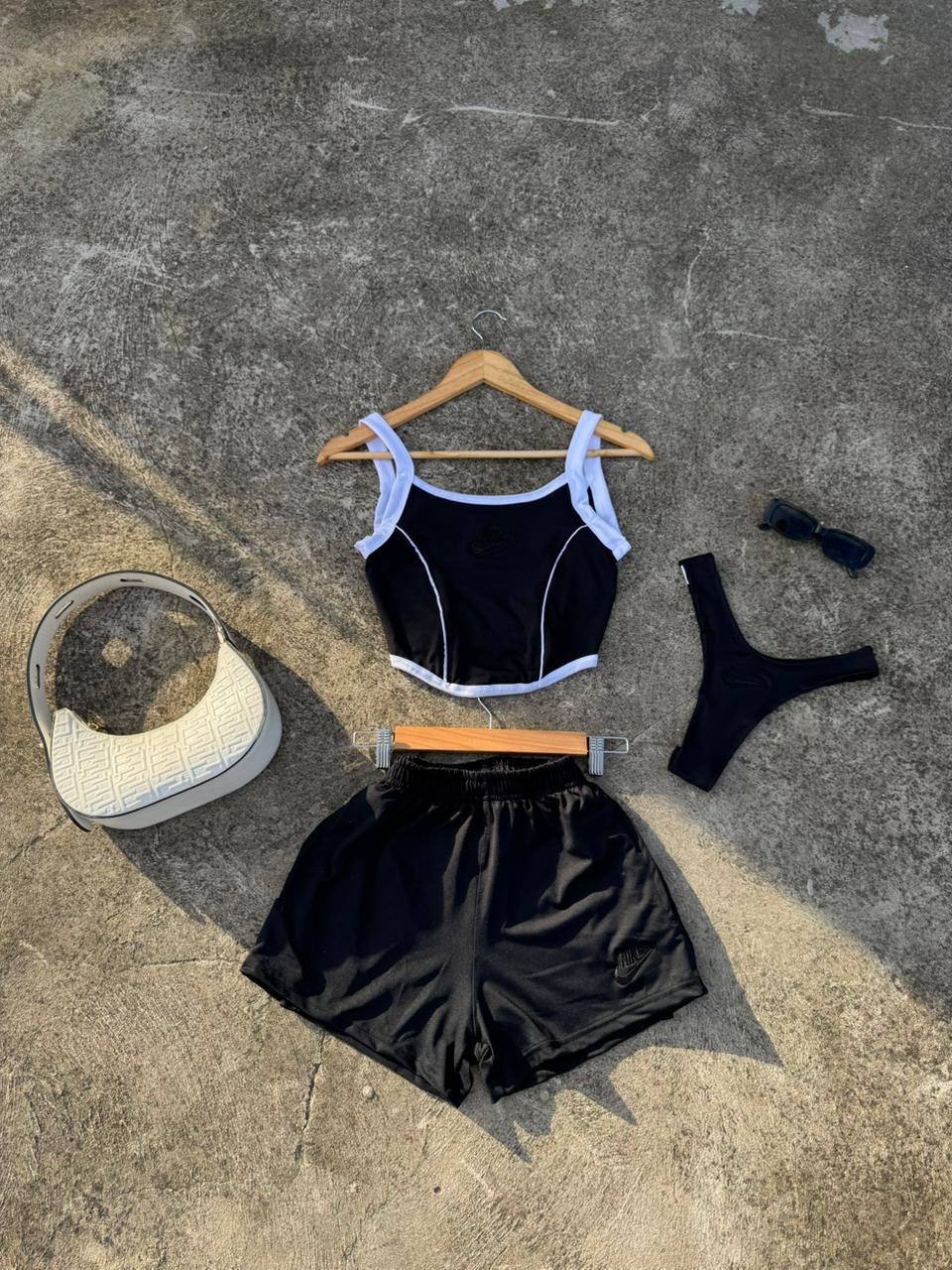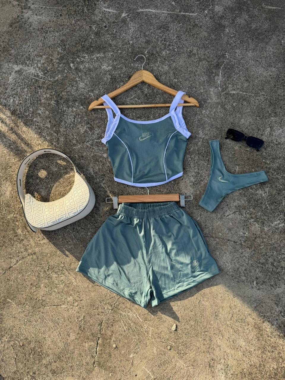 Tres piezas incluye bombacha de ba帽o, short y corset