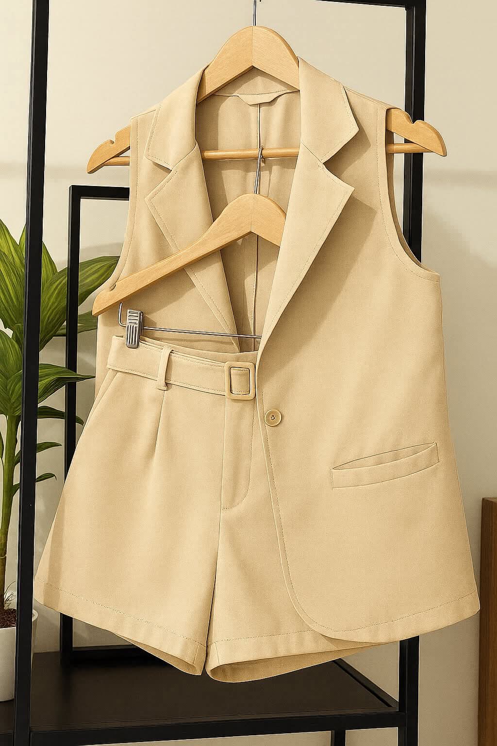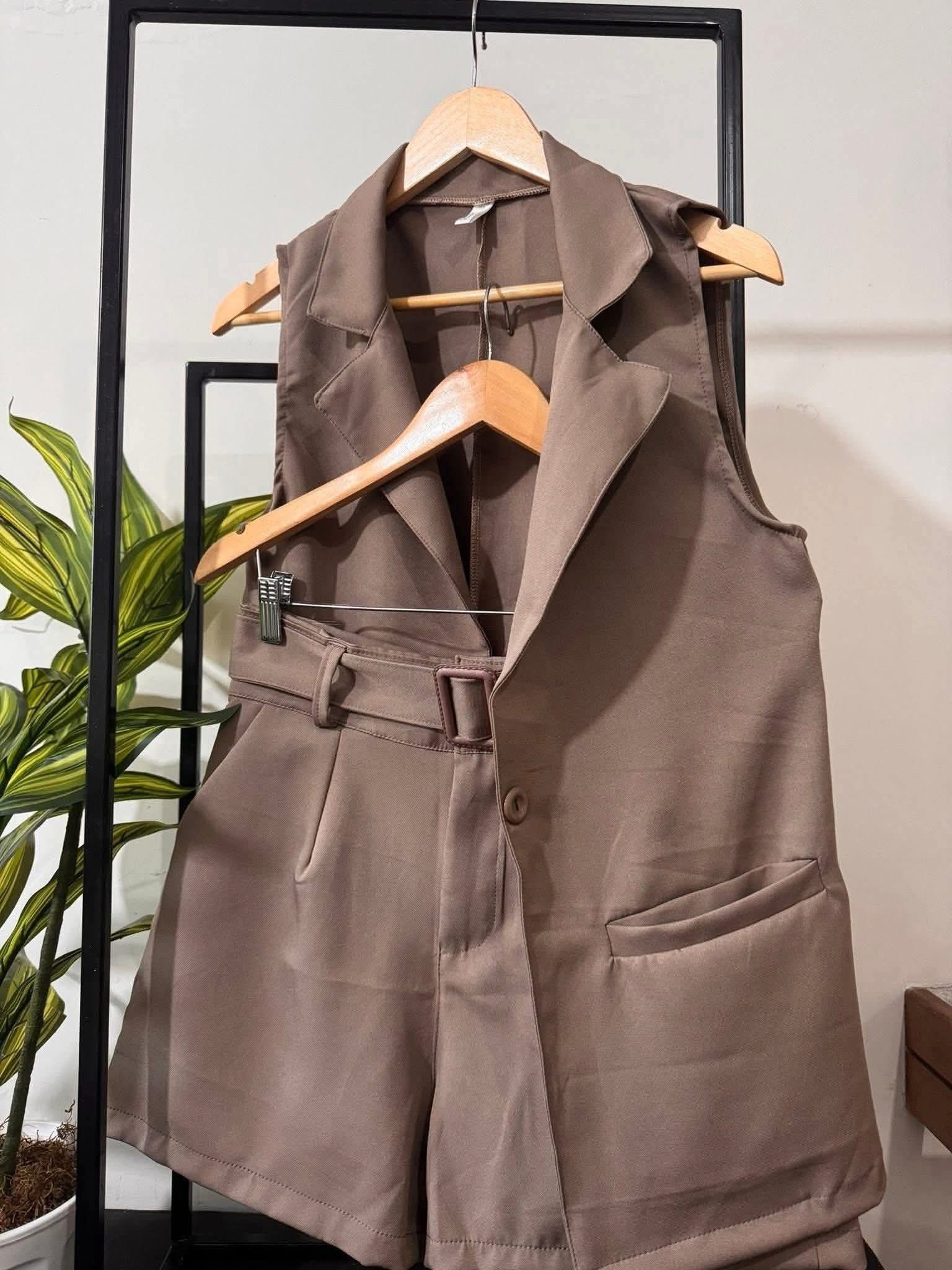 El chaleco tiene bolsillos hermosa calidad , el pantalón también con bolsillos pinzas y cinto regulable