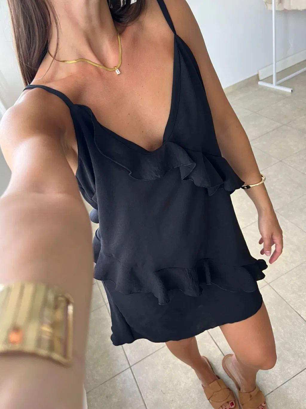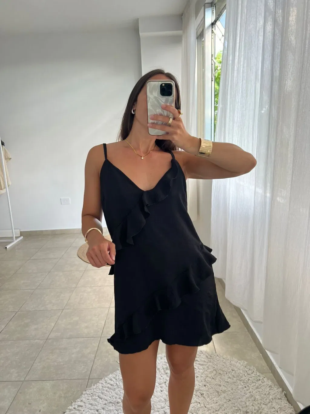 en negro, blanco y Natural ! Tiene un detalle de volado precioso 🥰